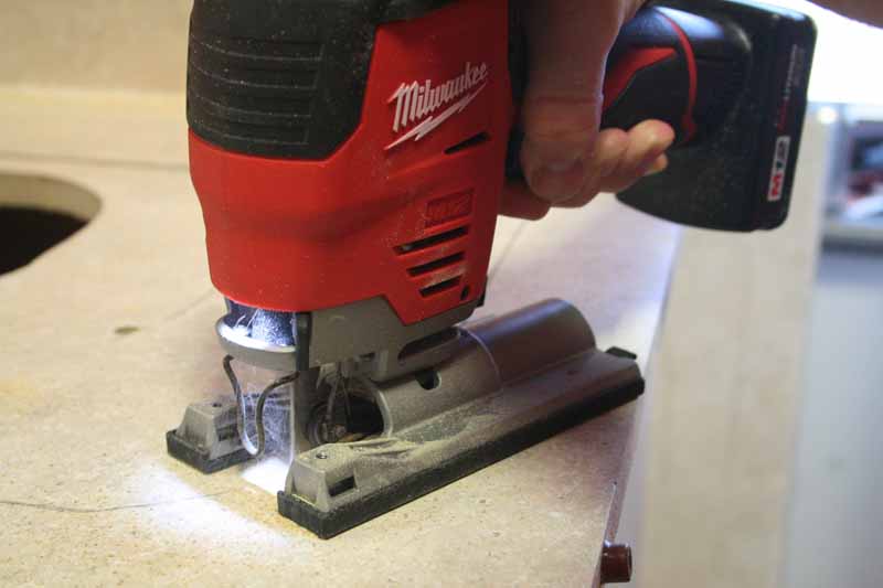 2011 Milwaukee Tools Media EventDavid Lincoln showed us the new M12 Cordless Jigsaw. The tool is incredibly compact, much smaller than theย M18 Cordless Jig Saw (2645-22) we reviewed earlier this year, and has positive bevel stops at 45 and 90 degrees. It also has what Milwaukee calls its โ€œhybrid gripโ€ and it really feels more like a drill than a jigsaw, which is to say that itโ€™s very comfortable in the hand. We cut out a few holes in some linoleum countertops and found the saw to be extremely easy to maneuver. The included LED lights also did a good job of keeping the work area illuminated as we drove the saw around our laid-out cutting path. An included battery gauge and variable speed trigger make this a really good tool to see added into the M12 line. The tool doesnโ€™t have an orbital mode, but as part of the M12 line we arenโ€™t sure this is something weโ€™d expect or even want to see. Pricing is said to be around $149 for the kit version of this tool which will have an M12 RedLithium battery and charger.