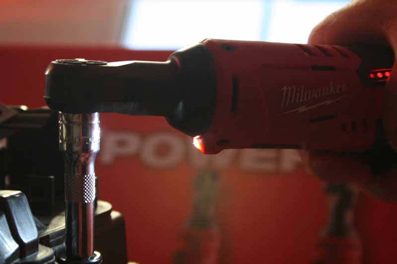 4003Bobby Shaw, who, contrary to popular opinion, is NOT a famous rock star, revealed the new M12 Cordless 1/4โ€ณ (2456-21) and 3/8โ€ณ (2457-21) Ratchet kits. These tools are seriously designed to replace pneumatic tools of the same type. These are ingenious tools that really address some of the issues related to those who otherwise have to reach for pneumatics when performing work on motors or anywhere else a ratchet is needed. They even use a familiar paddle-style switch that makes them easy to activate and lets you maneuver them inside tght spaces and adjust your hand on the handle as necessary to get the job done. With the new M12 products, you can really just pick up the tool and go to town. Milwaukee recessed the forward/reverse switch on these tools so you canโ€™t accidentally bump it and switch direction, even when youโ€™re using the tool in cramped quarters. Thereโ€™s a variable speed trigger and the expected LED light. Lastly, a battery gauge letโ€™s you know how much juice is left on the tool so you donโ€™t get stuck with a dead battery when you need to get some work done. These tools put out between 30 and 35 ft lbs of torque depending on the model.