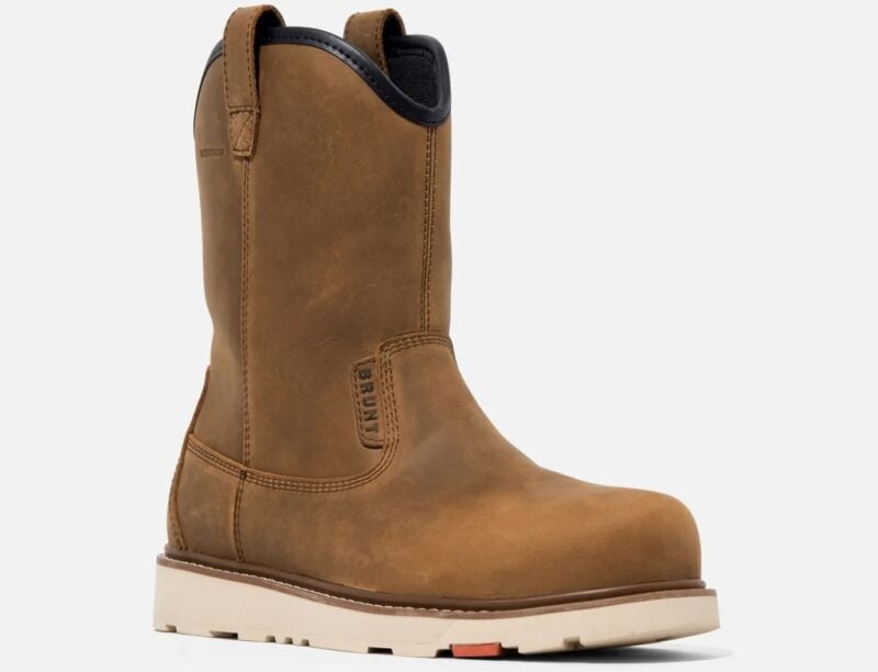 Finally, the Brunt Bolduc work boots feature an extra-tall 9-inch height. You can choose between a waterproof composite toe and a non-waterproof soft toe. Thereโs also a waterproof Brunt Toe model that adds an extra layer of protection with overmold toe and heel guards to protect high-wear areas. The Bolduc boots are EH-rated and slip/oil-resistant. Their outsoles are also heat-resistant, standing up to temperatures as high as 572ยฐF/300ยฐC.