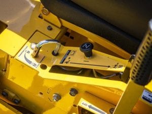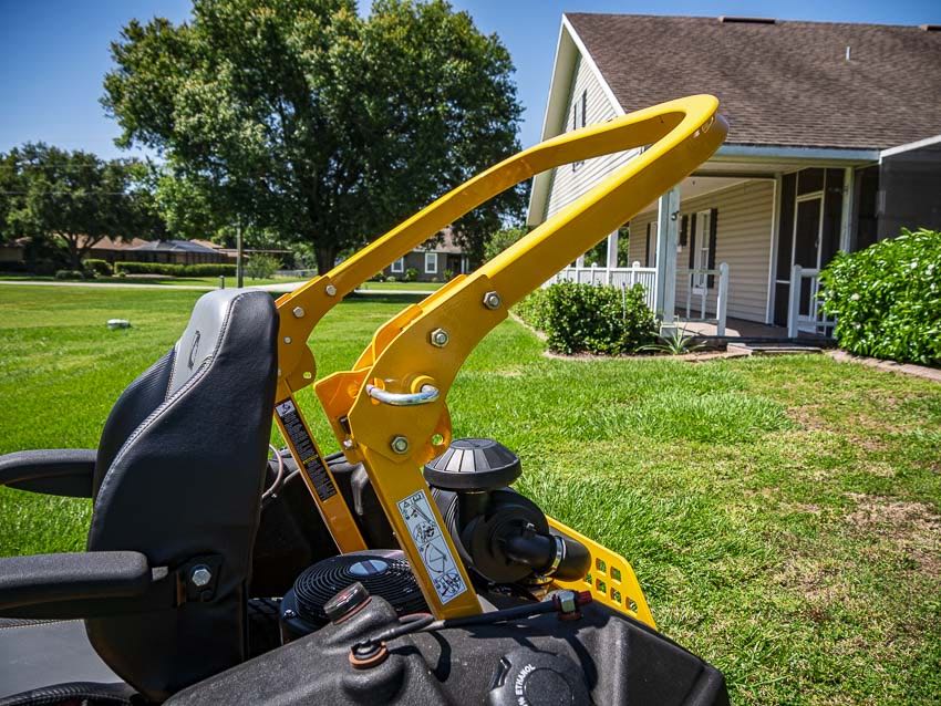 The Cub Cadet Pro Z 560 L KW has your safety in mind as well. It comes with a seatbelt and a 3-position ROPS system that adjusts simply by pulling on a couple of spring-loaded locks. We had to drop ours down one position to get it into our Bull Shed. And like all great life lessons, we learned this one the hard way.
