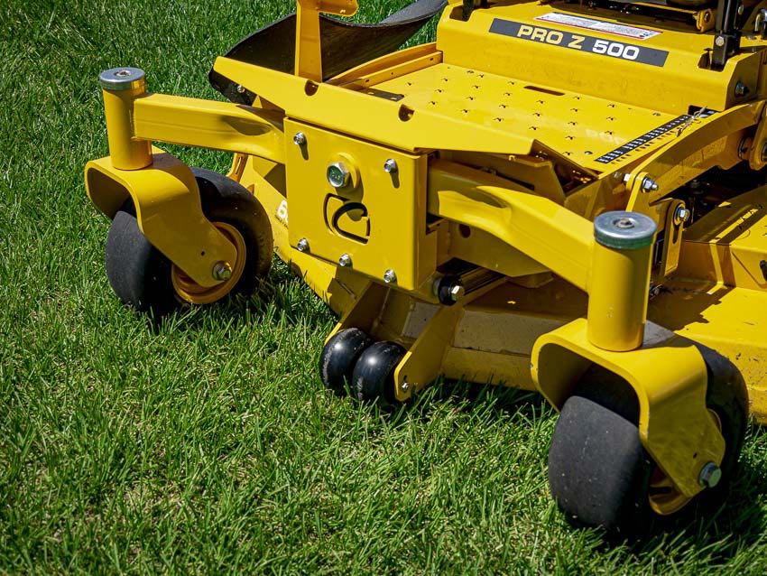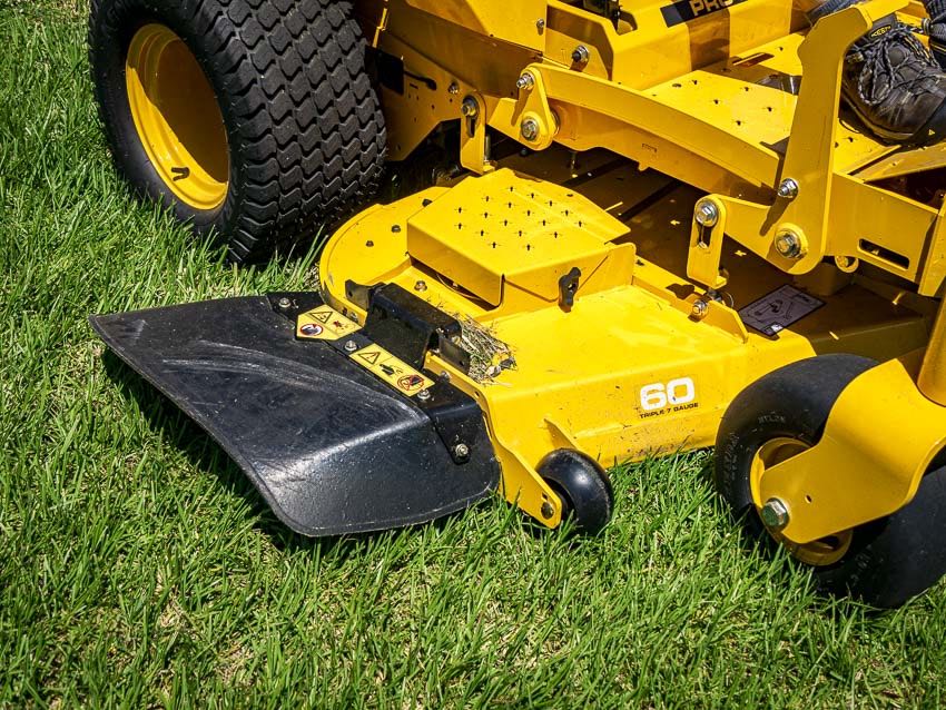 Where the heavier 72-deck on the Pro Z 972 dualie used the electronic power lift, this one has a spring assisted manual deck. Spring-assisted decks are great for quickly rolling over bumps and barriers and they donโ€™t require thought or fancy buttons to work on-the-fly. The pin lock made it super-easy to set cutting height as well. Adjustments can be made in 1/4-inch increments between 1 and 5-inches. A manual lock-out lets you keep the deck raised for transport.