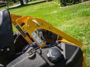 This is due to the near-indestructible build of the mower cutting deck and frame. Cub Cadet uses 7-gauge fabricated steel for the cutting deck, including the top and bottom reinforcement plates. Meanwhile, the rolled leading edge reinforcement uses 1/4-inch steel, and the trim and discharge sides go with 5/16-inch steel. The rear bumper/engine guard uses the same thick plate, but with pre-drilled mounting points for attachments. The frame uses a fully-welded 3/8 x 5-inch laser cut steel with integrated tie-down slots. Short story long, this mower could double as a small tank.