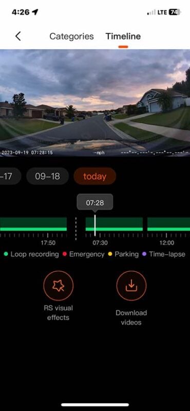 The dash camera has a built-in Wi-Fi signal to connect to your phone or tablet. From there, you can use the 70Mai app to get a live view of what the camera sees on a larger screen. Thereโs a little bit of lag compared to viewing on the cameraโs display, though.