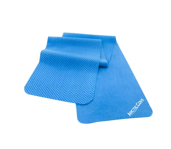 Made from an advanced PVA (Polyvinyl Alcohol) material, these products feature some of the same technology built into the clothing I use for triathlons. The PVA has a cooling effect when it comes into contact with water, so simply soak it for a minute and apply it. When the cooling effect wears off, soak it again, and youโre good to go. The bandana should retail for $3.99, while the towel is expected to be $9.99.