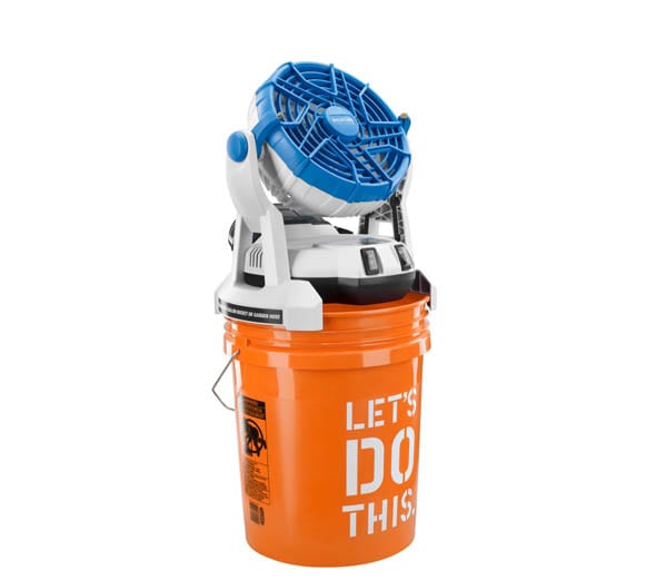 I love it when tools make good use of the 5-gallon bucket, but this one has to be my favorite. The Bucket Top Mister is designed to sit on top of most 5-gallon buckets that are used as a water source, but can also be connected to a standard garden hose if a bucket is not available. It runs on an 18-volt battery and is compatible with the Ryobi One+ 18V system. In fact, the fan is essentially a Ryobi 18V One Plus Hybrid Fanย (why improve upon perfection?). It comes with a 1.3 amp-hour battery and a 6-hour charger for up to 2 hours of cooling, but using a 4 amp-hour Ryobi One+ Lithium-ion battery will get you close to 7 hours of runtime. The system will be selling for $99.97.