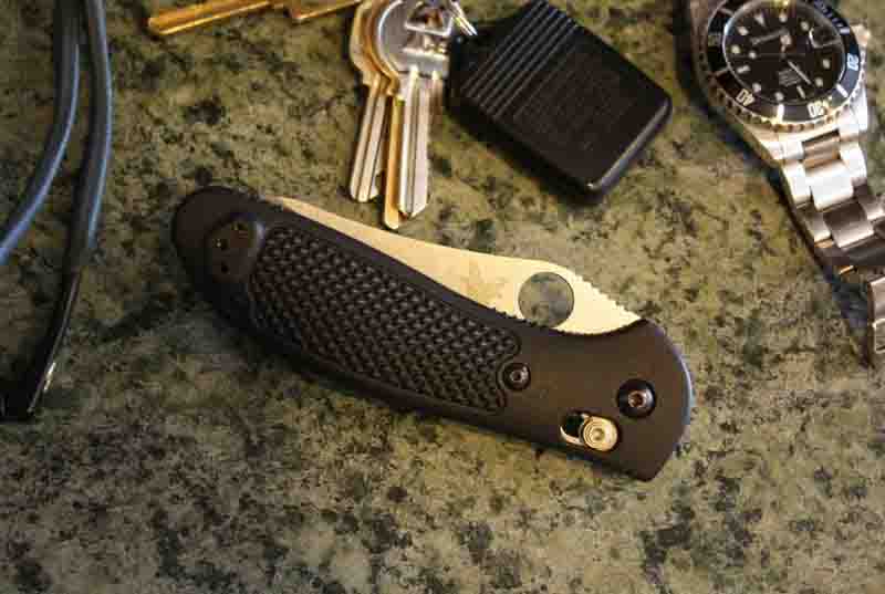 We have used the knife to cut a good number of different things, from paper to duct tape to plastic house wrap, and it has remained sharp. The good news is that if you don’t feel like sharpening your knife yourself, Benchmade has a lifetime sharpening service. For $5.00, you can send it in, and they will sharpen it and send it back to you. Also, should you damage your knife while under normal usage, they will repair or replace it.