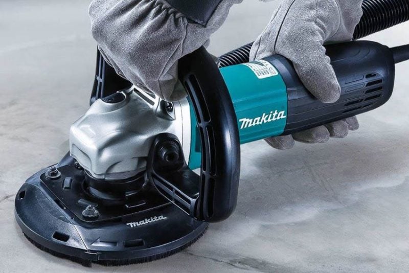 Check out Makitaโs PC5010CX1 for a 5-inch grinder with a concrete shroud as an all-in-one tool. Its 12-amp motor has 1400 watts of muscle and thereโs a vibration-dampening spring system to make the job less fatiguing.