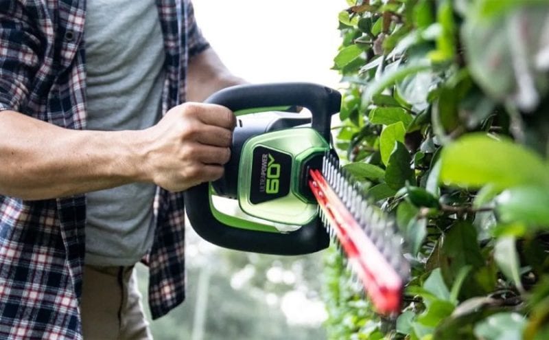 Greenworks ended up in a heated race with Ryobi and EGO for our pick as the best cordless hedge trimmer for homeowners. It takes the win for the best value with 26-inch knives and a higher 3200 SPM top speed with a 1.2-inch cutting capacity and a rotating handle.