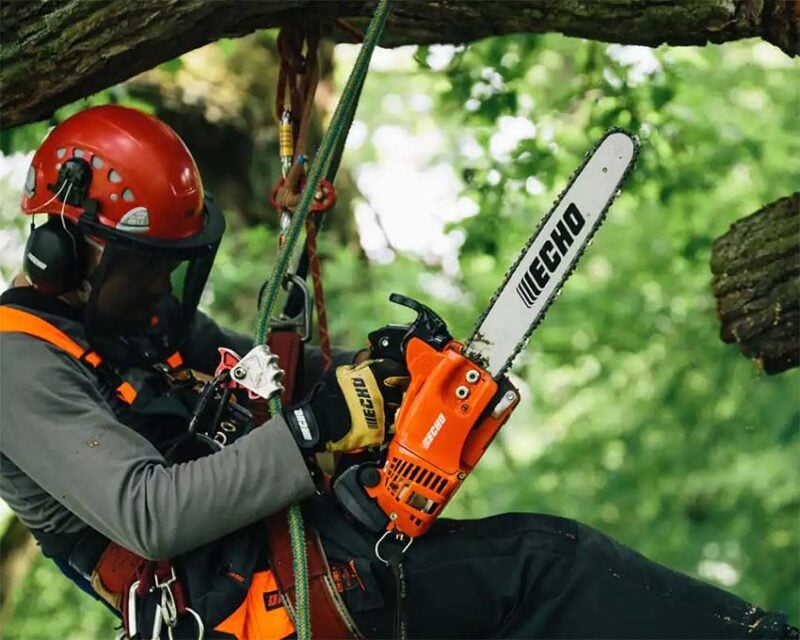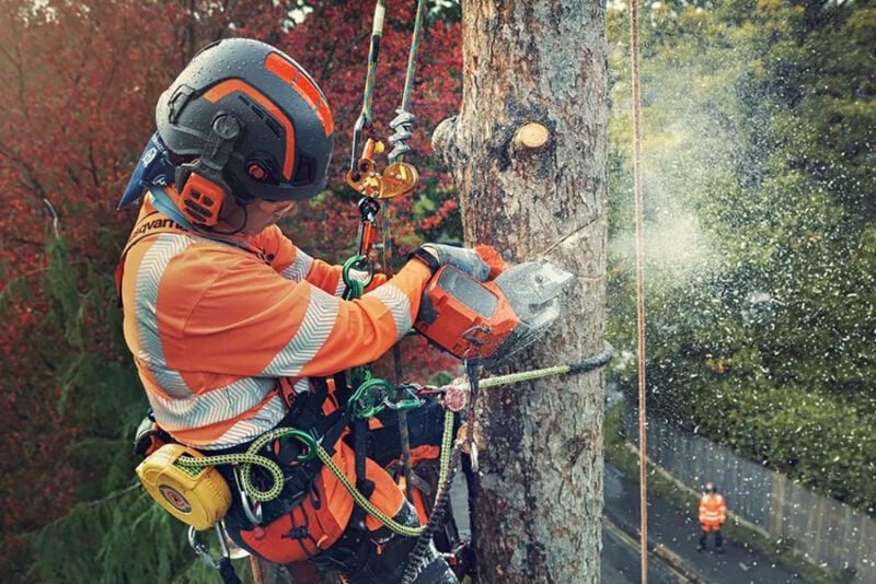 While Echo takes the cake as the lightest professional choice, Husqvarna does have the option to use a backpack battery and shift some of the battery weight off of the saw. Itโs not terribly practical when youโre climbing, but can be handy for ground-level work.