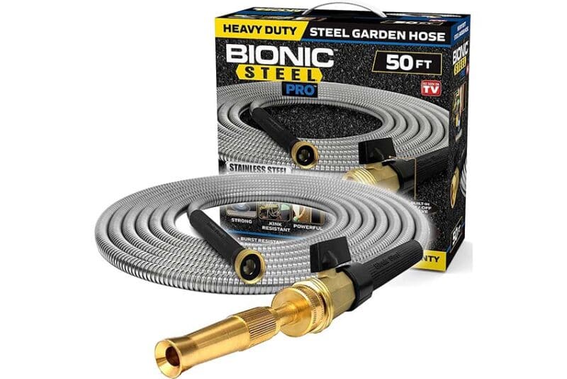 Jump to this Garden Hoseย โ - Best Kink-Free: Bionic Steel Stainless Steel Water Hose ย โย Buy from Amazon