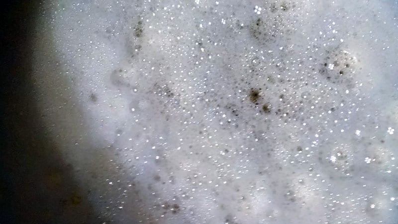 Once properly mixed, I applied the first โcoatโ with a towel. It quickly dried โ maybe a little slower than TSP, but I didnโt time it. Once all the walls were wiped down, I started at the bottom and worked my way up to avoid streaking and drips. A warm water rinse is needed to remove any remaining residue. As you can see, it bubbles up like soapy water.