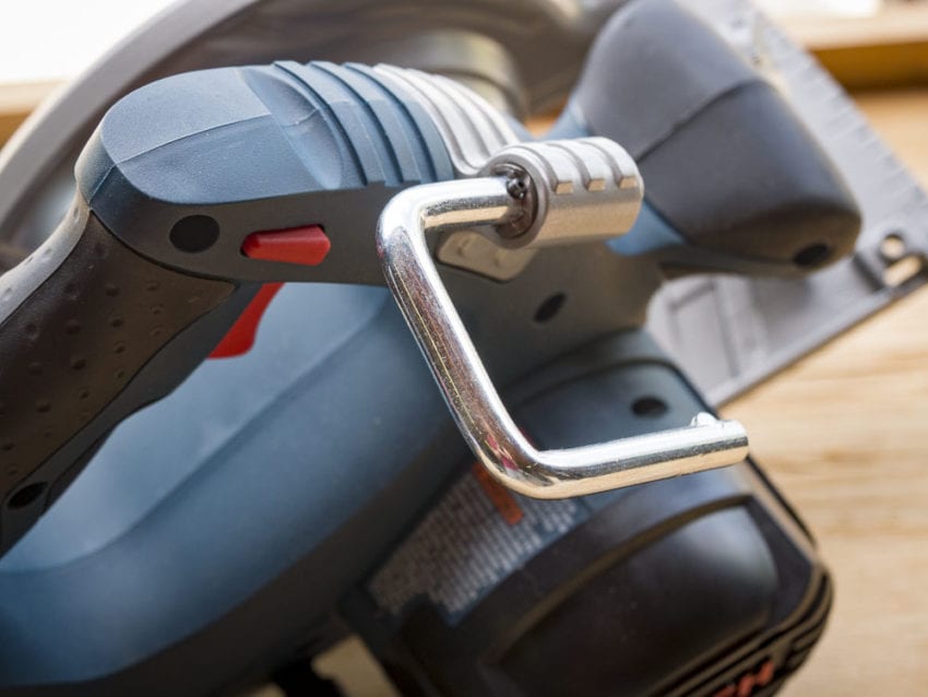 One of the features you donโt see on every circular saw is a rafter hook. Even though this model is pretty old by cordless standards, Bosch put one on there. Itโs a feature many Pros demand on circular saws and reciprocating saws.