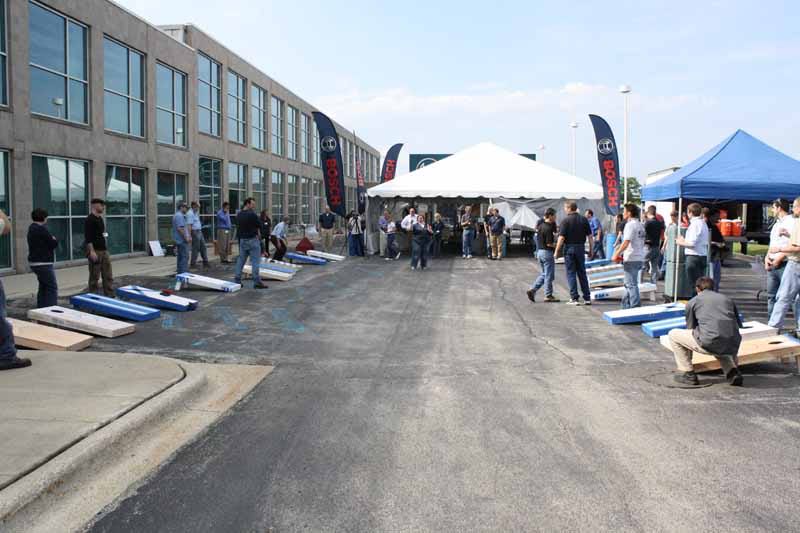 Turns out, Bosch judges donโt appreciate a good flame jobโฆ perhaps they havenโt spent enough time online as we hadโฆ In any case, everyone was assigned a team to play against and our team worked its way through to the final four and then on the to the bean bag toss championship. We lost, but with our dignity, and the final tally had all present members of Pro Tool Reviews and Toolmonger winning prizes. Tom Gaige picked up best bean bag toss build (due to having impeccable construction quality), Sean and I picked up second place in the toss championship, and Toolmongerโs Chuck Cage (who, with a name like that, we expect to see in the next Mortal Kombat movie) was on the winning bean bag toss team. Overall, not a bad day for everyone involved.