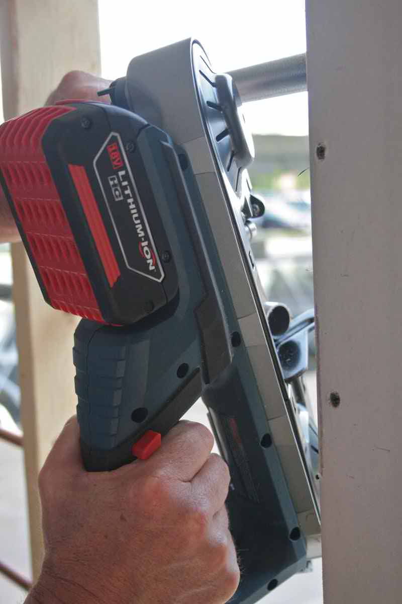 The Bosch BSH180 Compact Band Saw launched back in March, a bit too quietly perhaps. We might need to make a bigger deal of this tool. It’s absolutely incredible – and I’d almost say that every commercial electrician should definitely have this as part of their arsenal. This tool is 60% lighter and 40% more compact than your standard hand-held corded band saw. It only weighs 7.5 pounds and is just 13.5″ long – think about how great this would be for overhead use!