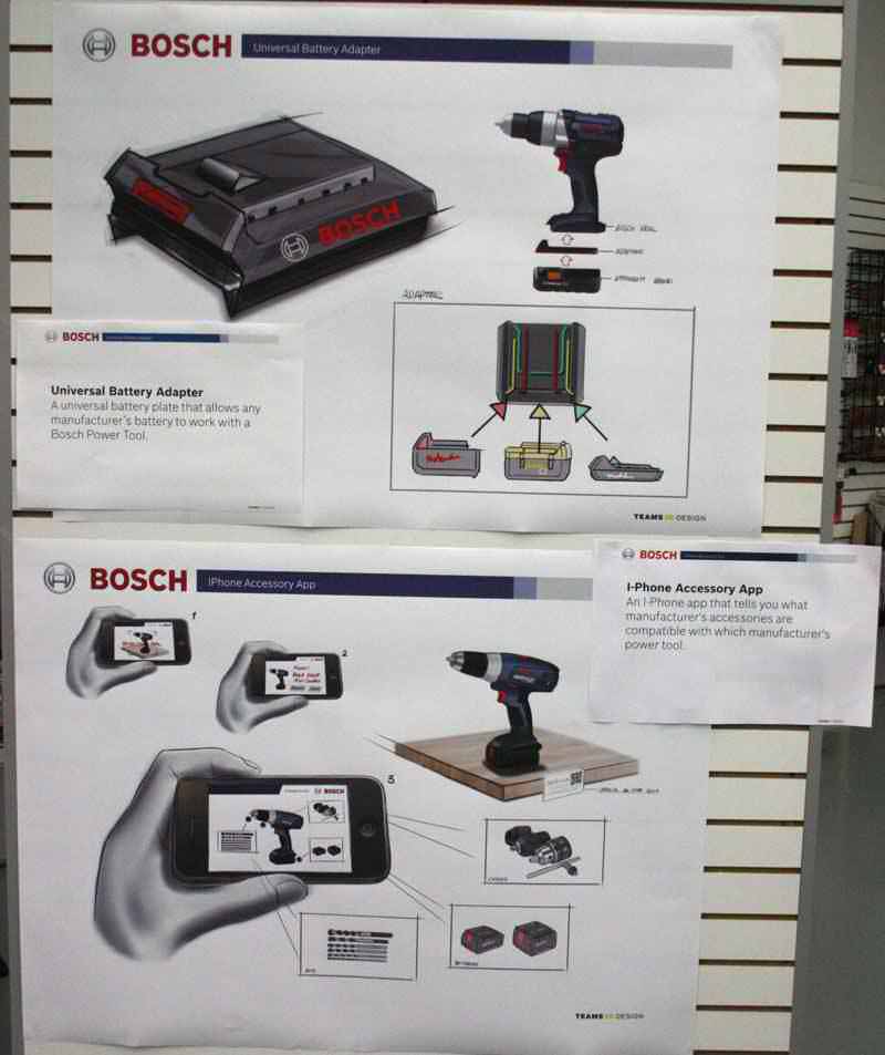 Next up was a bit of a surprise. It seems Bosch took some of our responses to an inquiry on what kinds of new tools we’d like to see and turned them into actual product concept drawings. We gathered around several of the more prominent designs and interacted in a back-and-forth creative discussion of what these new tools might bring and how they might operate. As we kept the discussion mostly on what features each product “might” have, things quickly got both interesting… and occasionally downright silly. Some of the inventions included: