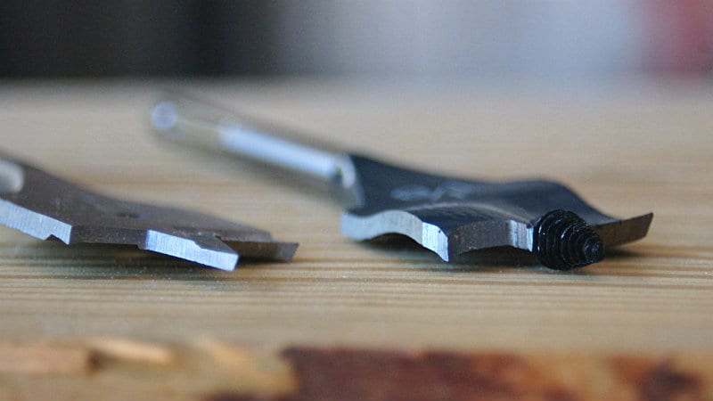 The threaded tips and blade design help Daredevil bits to grab hold and bite down on the wood surface. While you can work one-handed with a traditional spade bit, youโ€™ll want two hands on the drill. Even better, youโ€™ll want a side handle. When you start to really deliver the torque to the bit, itโ€™s going to twist on you if you donโ€™t have a solid grip on the tool.