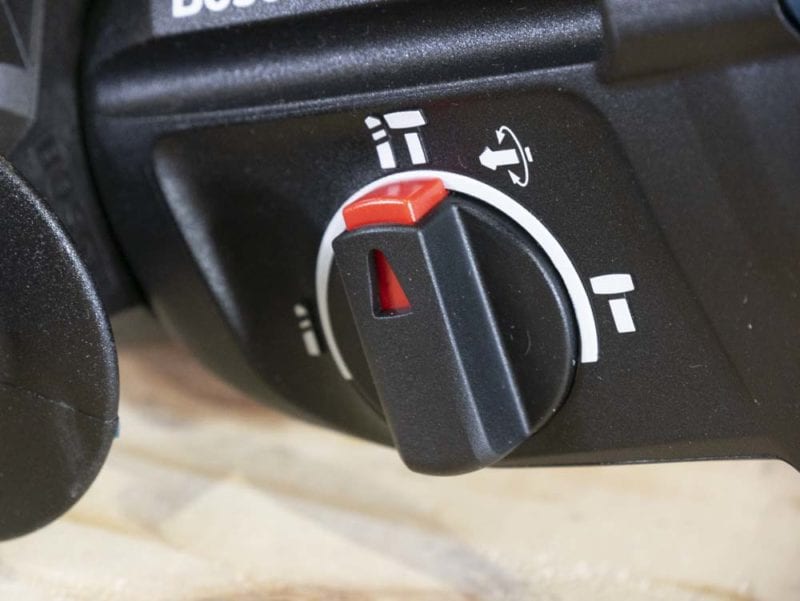 Whatโs interesting is that Bosch goes with a two-stage dial. You have to push the top button and give it a little turn to unlock it. From there, it will snap back into the next detent it comes across. That helps prevent you from accidentally popping the dial out of the selected mode.