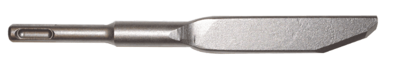 The Bosch mortar knife features a plunge depth of 8 inches and is available in either 1/4โณ or 3/8โณ widths to suit the specific job at hand. The design of the knife, combined with the action of the SDS-plus rotary hammer, means that the effective angle of use is greater than that of a plug chisel. The design also quickly removes debris to eliminate the โhalf-moonโ material in the head joint. Induction-hardened materials and a blunt tip extend the productโs life.