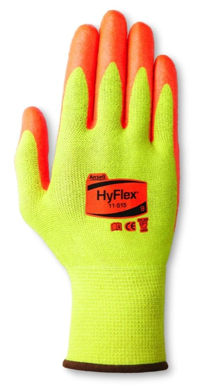 What they say:ย HyFlex 11-515 gloves offer a combination of cut protection and high visibility.ย An orange foam nitrile coated palm provides superior grip, tactility and assurance with high visibility in low-light situations, and an exclusive liner made with Hi-Vizโข DuPontโข Kevlar ยฎ Stretch Armor yarn offers ANSI Level 4 cut protection. Additionally, Ansell proprietary INTERCEPT Technologyยฎ yarn creates improved fit and greater comfort.