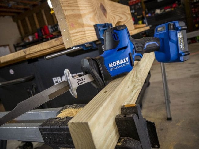 Kobaltโs 24V line has been quietly impressing us with its performance across the board. Their latest pricing structure also makes them an outstanding value. The 24V one-handed reciprocating saw continues the trend with excellent performance and a $99 bare tool price. If youโre not already on Kobaltโs battery system, a 4.0Ah battery and charger will run a little over $100 more.