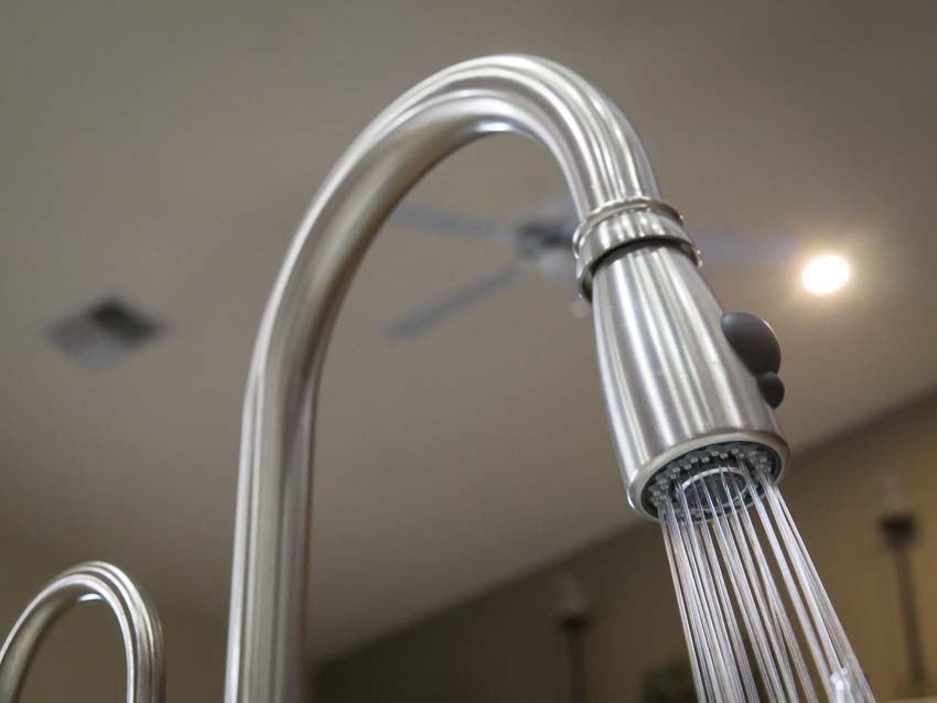 Like allย Franke products, they arrived well-packed and with all of the accessories leading directly to the faucet or filter. The quality of finish, as well as the build quality, impressed. By all I could ascertain visually, these faucets should last a lifetime. The Franke Farm House FHPD180 Satin Nickel pull down kitchen faucet shippedย nestled inย a cloth bag within the box. The faucetย includesย integrated braided supply lines and pull-out spray nozzle. The supply line and pull-down faucet hoses all looked well-made.