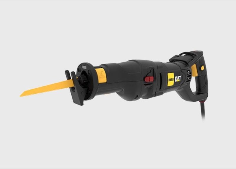Two CAT reciprocating saws include one on the 18V platform and a corded model. The corded recip has a marginally longer stroke length at 30mm (~1-1/8″), but the 18V model offers marginally better power with 200 more strokes per minute.