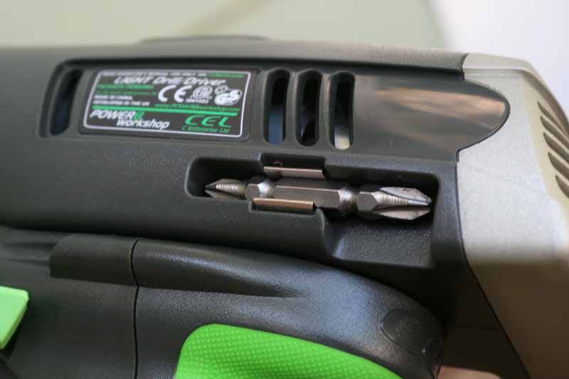 At 4.5 pounds, itโs also quite heavy to hold in the hand, and the weight is unbalanced, placing a majority of it forward and almost causing the tool to tip over, were it not for the oversized Powerhandleย Ni-Cad batteryย base. We liked the included bit storage on each side of the drill โ this seems like a feature that is quickly getting eliminated in favor of smaller motor housings. You could also get the bits in and out without using a tool or possessing fingertips that can grip as well as steel pliers.