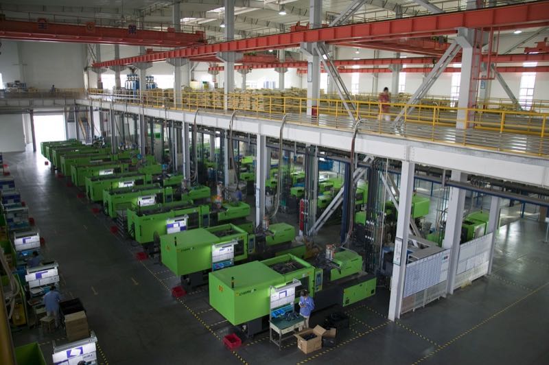 Chervon uses more than 60 injection machines. They have a centralized drying and conveying system that keeps everything moving and aids in the production process. Changing out a machine fromย one moldย to the following type of mold can be done almost instantly, just by moving the linking from one machine to another. Itโ€™s a well-thought-out system that offers considerable flexibility and productivity enhancements.