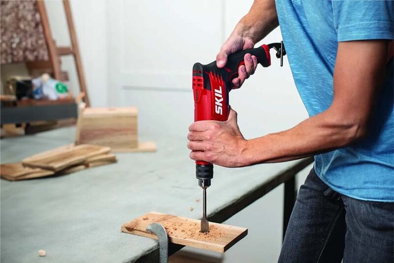 The cordless model is the Skil PWRCore 20 Brushless Compact Hammer Drill. It’s $129 as a kit with a 4.0Ah battery and charger on Amazon.