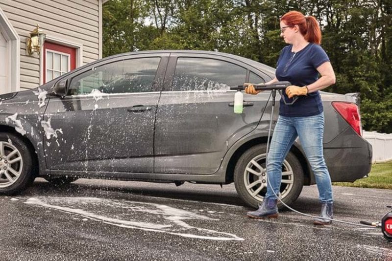 The Craftsman 1700 Electric Pressure Washer stays really compact for storage and portability but has enough power to handle cleaning vehicles, sidewalks, and fencing.