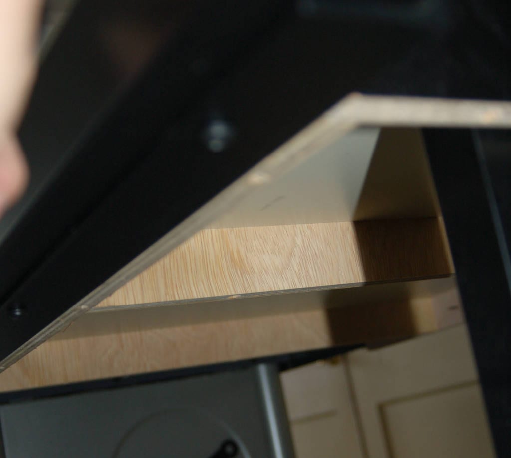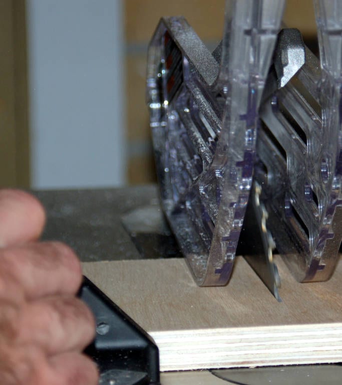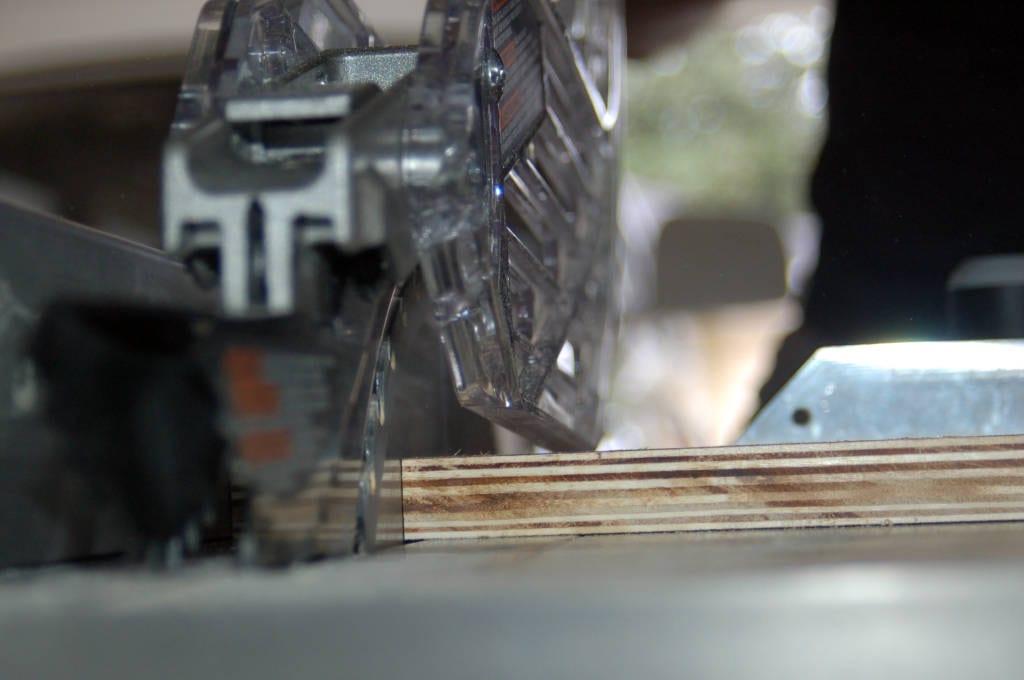 My first project with the saw was making a small bookshelf using ยพโ birch plywood for our breakfast room. ย I was really impressed with how effortlessly and quietly the blade ripped the plywood leaving a very clean cut. ย I also tested its mitre ability and each piece came out very precise. ย The bevel adjustment is great for making moulding cuts with a very accurate 0-45 degree setting.