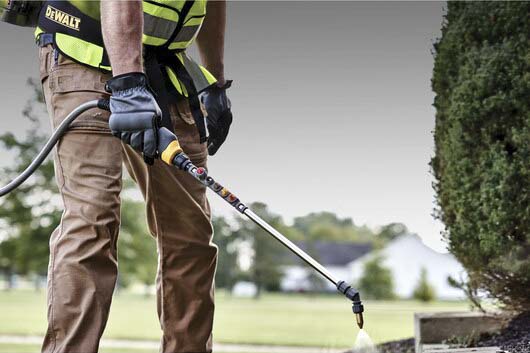 To adjust your spray pattern, DeWalt includes five fixed nozzles plus an adjustable brass nozzle that stores conveniently on the wand.