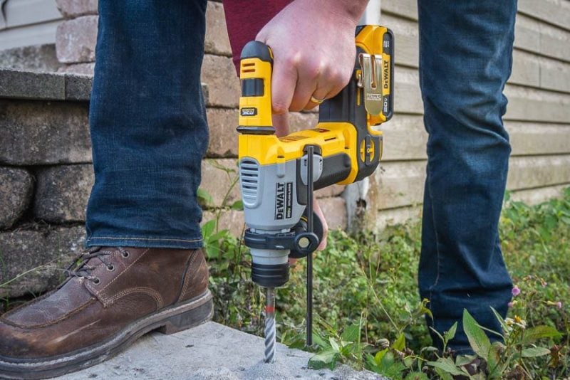 One of the nice things about using a smaller rotary hammer for smaller holes is the lower overall vibration. As an official measurement, the DeWalt DCH172 delivers 8.8 M/Sยฒ. Practically, itโs nice to use a tool that does the job well without leaving you with jelly arms.