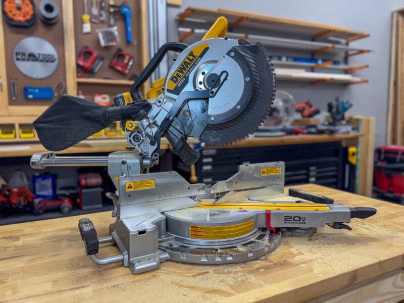 We’d love to see them release a forward-sliding model, like the Makita 40V max XGT GSL04, because it requires less space behind the saw and can sit flush against the wall. It’s a really nice feature to have, and DeWalt miter saws tend to be at an easier price point than their teal competition.