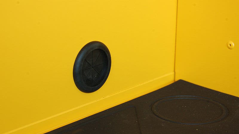 A welcome addition is a pair of knockout holes for electrical cords in the DeWalt 36-inch top Chest. They include inserts that help keep dust out when not in use as well as protect the cord from scraping the edge. Iโ€™ll be rigging at least one side with a power strip and running an extension cord to it to power my chargers. Iโ€™d love to see the next generation include an integrated power strip rather than just knockouts.