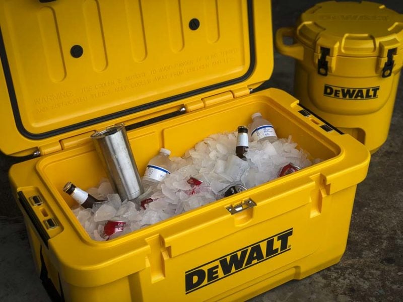 The Dewalt 65-quart cooler certainly grabs your eye. Yellow and black seem to be a favorite on some job sitesโ€”but it also turns heads while tailgating. Aside from the colors, however, this DeWalt-branded cooler has some excellent features. It also did a great job in our ice retention testing.