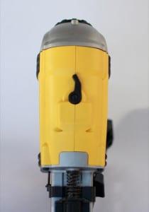 This is where it starts to get interesting. The magazine is offset just a smidgen, possibly due to the motor and battery assembly. This could contribute slightly to the balance issue I mentioned earlier. Loading fasteners is a breeze. The Pusher Latch locks into “loading position”, so you’re not fighting it as you load nails into the mag. It snaps nicely into “firing position” when pressed. No complaints here.
