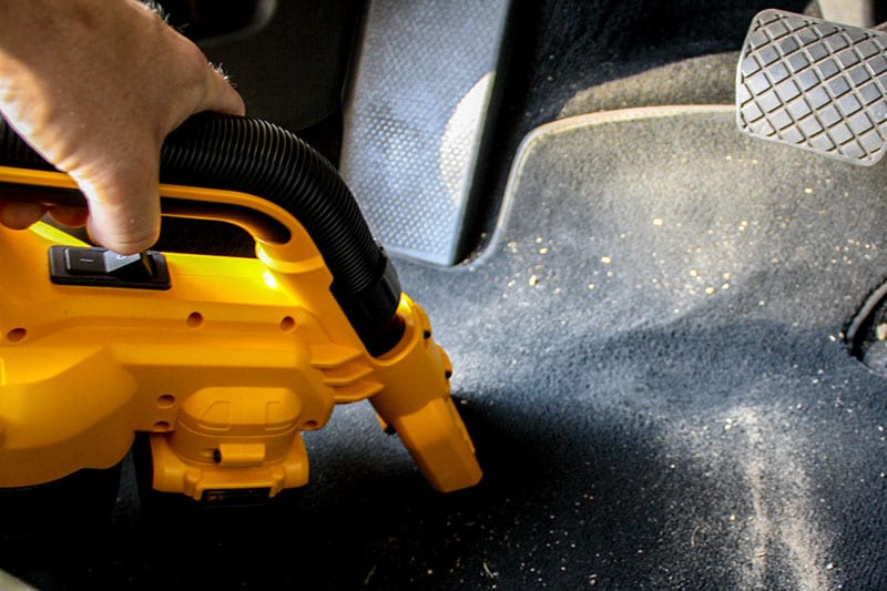 I also used the vacuum to do a quick detail of my carโs carpets. When I was car shopping, I swore that I did not want a car with black carpets as they show everything. I ended up with black carpets and on an almost daily basis my OCD kicks in and I have to do a quick shake off or vacuum them.