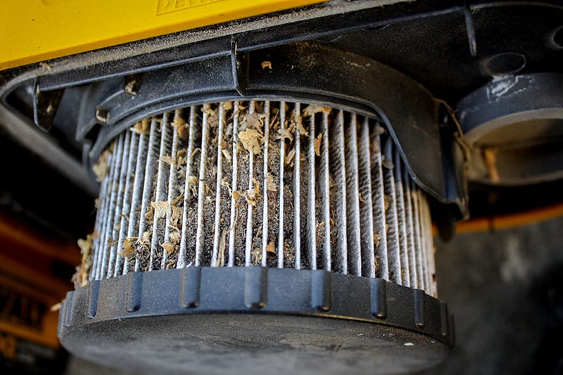 Once the tank is removed from the bottom of the vacuum, you have access to the removable filter. This is a HEPA wet/dry filter that traps 99.97% of dust at 0.3 microns according to DeWaltโs documentation. There is no need to remove the filter if sucking up liquids as it is designed to be rinsed with water when you need to clean it. Replacement filters are available in stores and on-line.