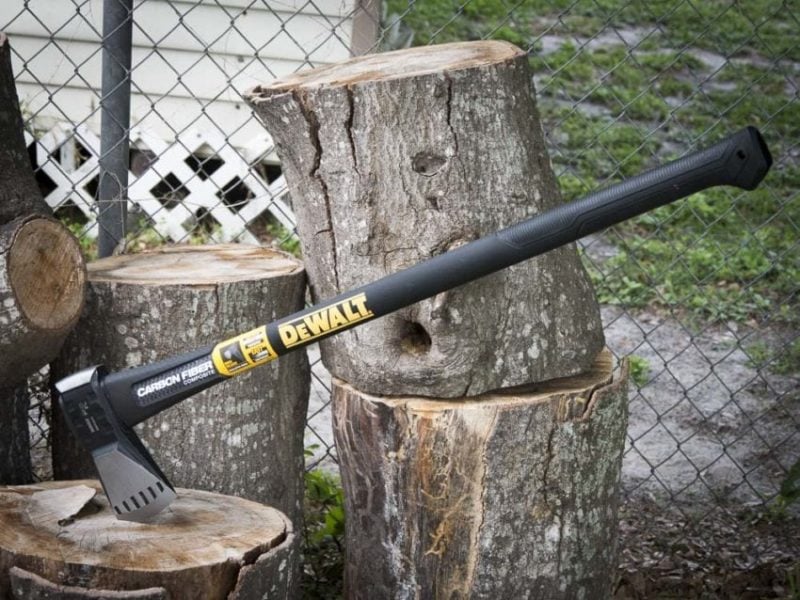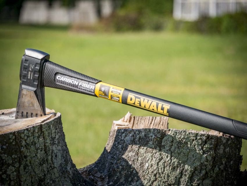 Carbon Fiber Composite Overstrike:ย DeWalt uses carbon fiber near the top of the handle to provide additional support where theย axe handle hits as you drive through wood and tends to break most often.