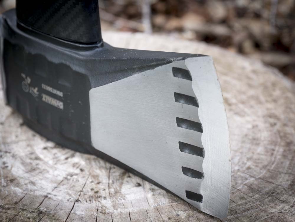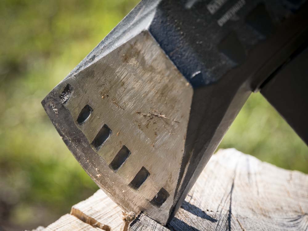 Scalloped Cutting Edges:ย Scalloped edges offer some relief from wood pressing in against the blade. It allows you to drive the edge deeper and release it easier than a standard axe head. Compared to my other axe in this size class, it does make a measurableย difference in both the strike depth and release. Donโt mistake it for perfect, though. Youโll still have to work it back and forth in some cases.