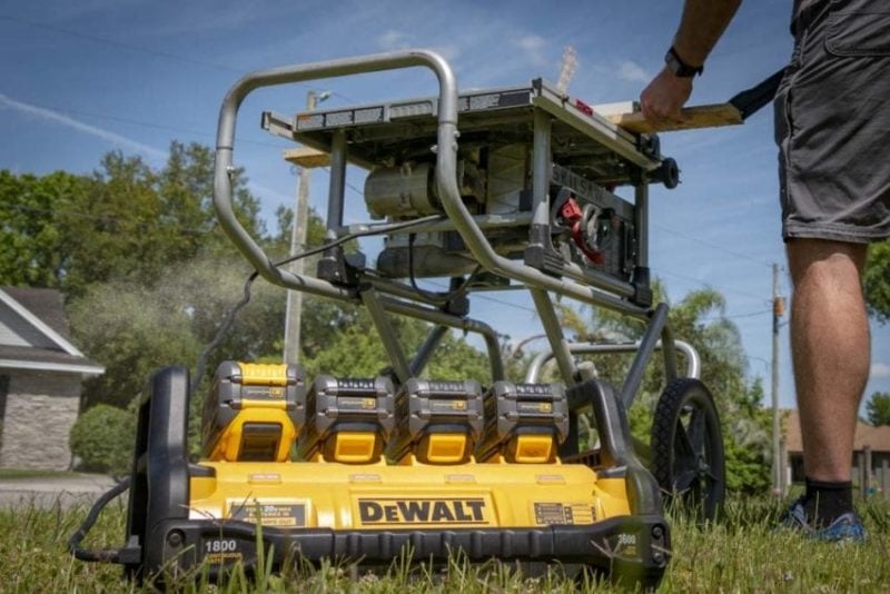 But DeWaltโs DCB1800 will run a table saw. And thatโsย impressive.ย The secret lies in its 3,600 surge watt capacity. Even the Ego Nexus Power Station, the most capable of the competition, fails the table saw test with only 3,000 surge watts. Although it has more continuous wattage at 2,000 compared to the DCB1800โs 1,800, DeWalt can handle higher inrush current.