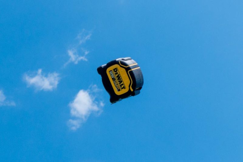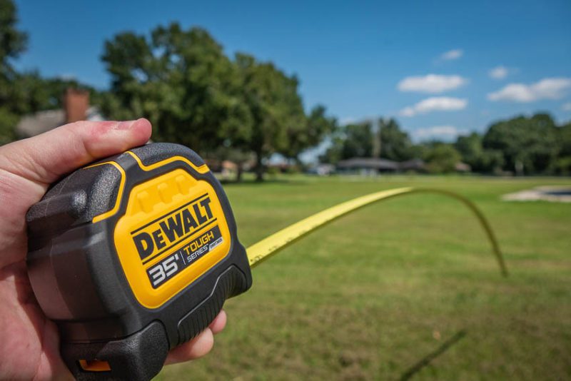 When it comes to standout, DEWALT TOUGHSERIES tape measures have a 1 3/16-inch wide blade thatโs capable of reaching out to 17 feet holding the tape measure in one hand while supporting the blade with your other.