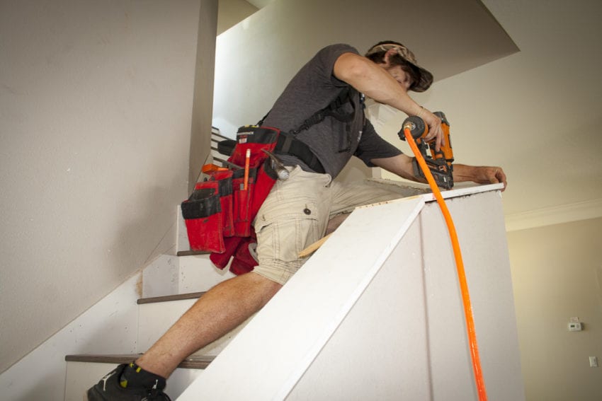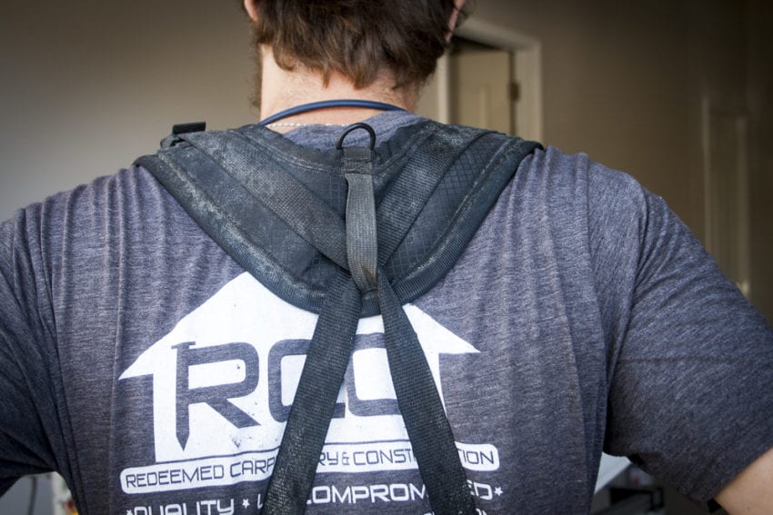Iโd be remiss if I didnโt mention how even the temporary tool-holding ability of the Denali is excellent. By that I mean you canโt store a nail gun in any of its pockets, but you can use the gunโs hook to hang it from the toolbeltโs loops. I have my nail gun hooked through a loop so I donโt have to lay it down or walk around to get it. This is especially helpful when working overhead on crown molding, for example.