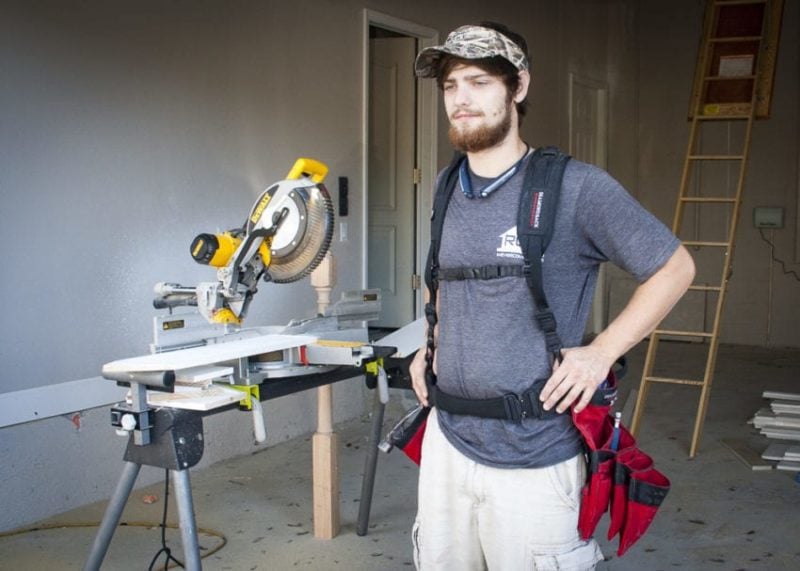 Every tool is easily accessible on this rig! And itโs accessible without being in the way, which is no easy task. When I was running crown molding, for instance, the pouches didnโt obstruct my movement or get in the ladderโs way. I highly recommend accessorizing with the optional hammer holster and flat bar holster like I did.