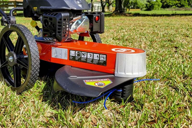 If you’re new to DR Power’s Trimmer Mower concept, it uses line/cable to cut rather than a blade. It’s like string trimmer line, but much thicker—175 mil in this case.
