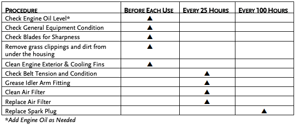 Regular maintenance is the easiest way to ensure the best performance for the life of your mower. Fortunately, DR Power provides an easy-to-follow maintenance schedule so you can stay on top of things!