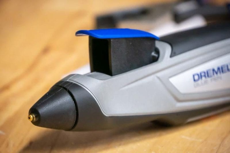 We also really appreciate the precision tip that Dremel includes on the pen. Not only does it let us do detail work without smearing hot glue everywhere, but it doesnโ€™t really drip when we put the pen down. The pen is comfortable to use and it has a wide base that you can set it down on without having to worry about the hot tip dropping onto your work surface. We used it for small project work and even to repair a small piece of trim.