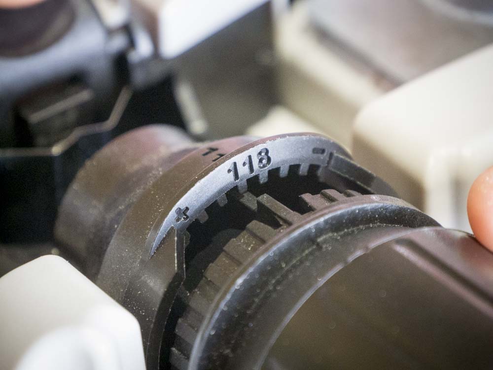 The angle markings are just etched in the plastic, so there’s no contrast to help you see them. A little paint would be good, etched metal plating would be better.