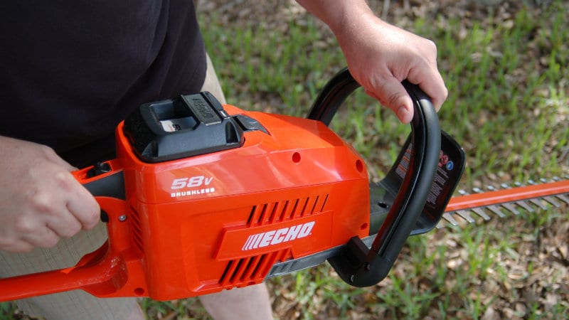 The Echo 58V Hedge Trimmer Iโm looking at today is part of the companyโs line that also includes a mower, blower, chainsaw, and string trimmer. Echoโs mower performed reasonably well in our Lithium-Ion Mower Shootout, receiving high marks for it lightweight composite deck and solid design. Likewise, the blower delivered excellent performance for its class.